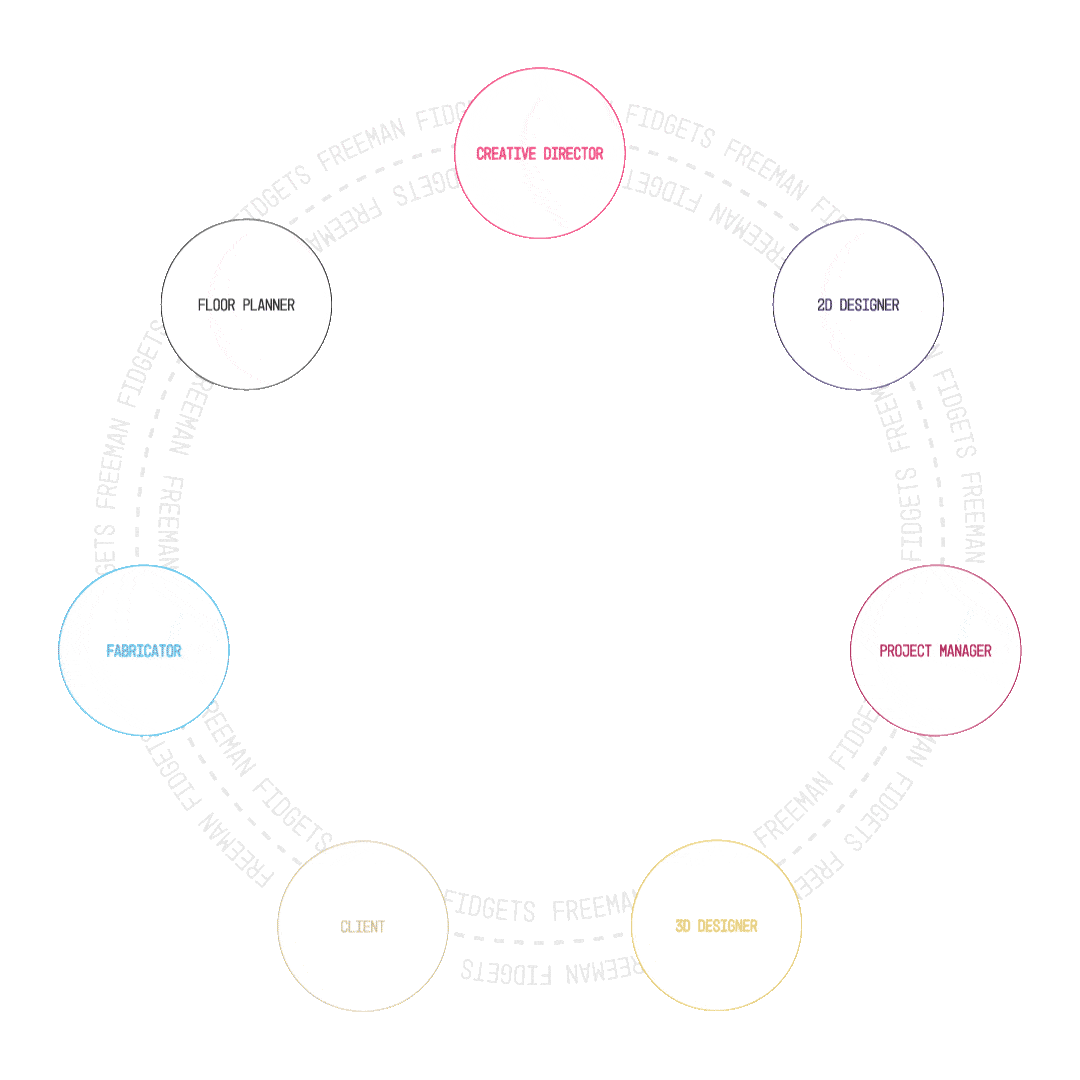 Freeman, environmental designers, graphic designers, creative directors, new employees undergoing onboarding, and clients
