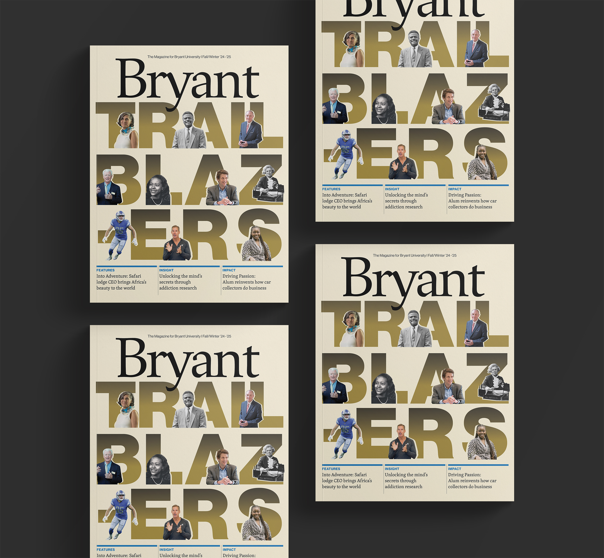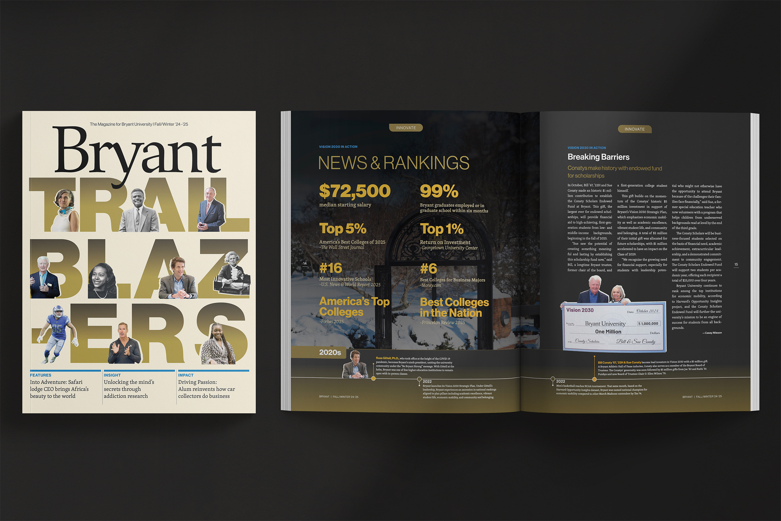 Presidential Impact Report, Bryant Magazine (Winter 2024, Summer 2025), University brand guidelines: Bryant University’s new brand and [IN] campaign application