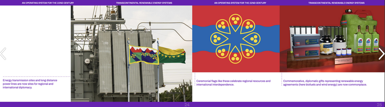 Project overview: By the year 2095, there will be a push toward complete energy independence due to pressures from climate change and limited traditional energy resources such as coal and fossil fuels. With this newfound energy independence, nations will be encouraged to redraw their borders due to their region's natural formation to optimize renewable energy generation. This independence will also become a part of their identity as renewable energy becomes a patriotic symbol of self-assurance and national pride.