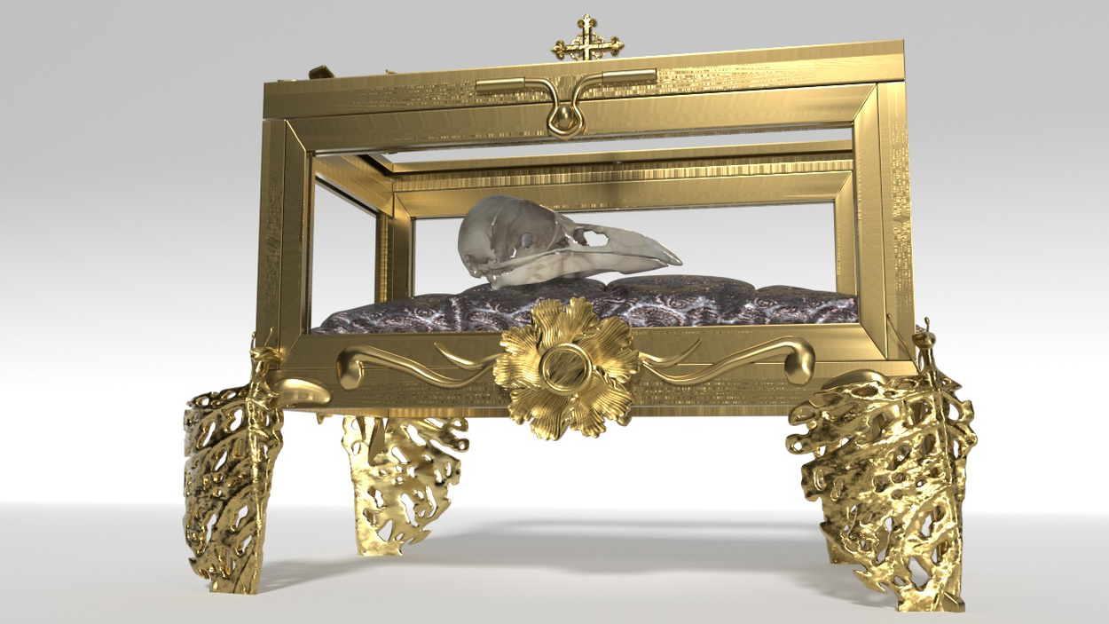 Project overview: This object explores how religious relics could change from being something largely human-focused to broaden and allow animals and other non-human organisms to be on the same pedestals as saints.